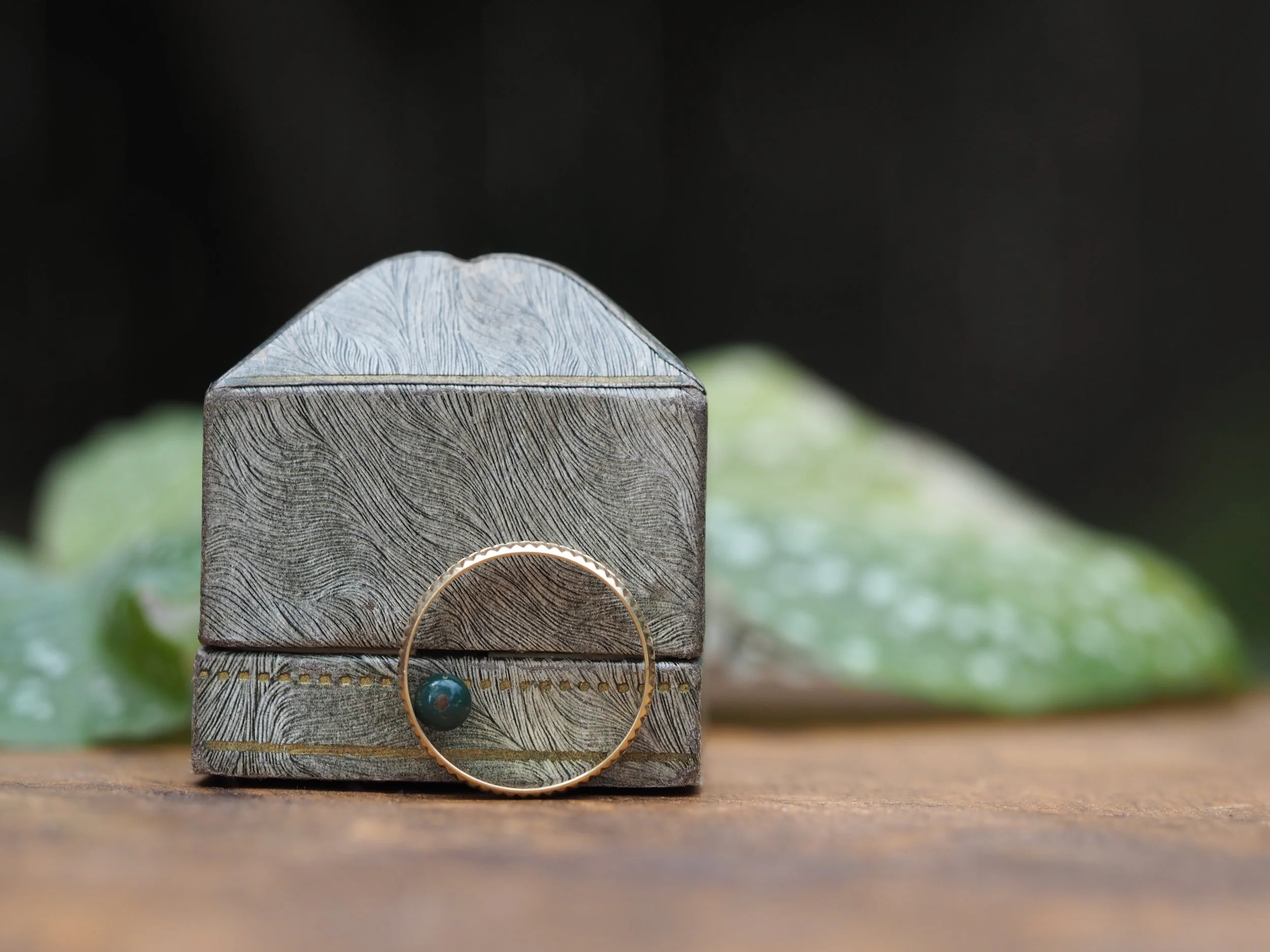 Vintage Italian made solid 14k yellow gold band by Milor Jewelry. The band features textured ridges on the outer edges, with a smooth polished middle section. The effect is a chic yet understated look. It measures 4.3mm wide.